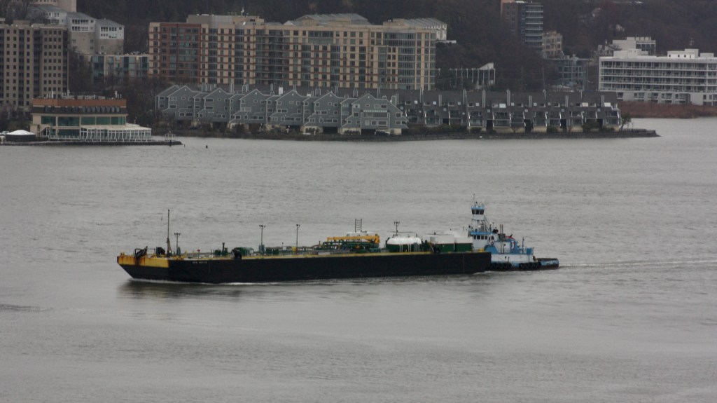Stephanie Dann, who’s homeport is in Florida and has not been observed by NRN before, brought a light barge back from Newburgh and headed for the Arthur Kill.