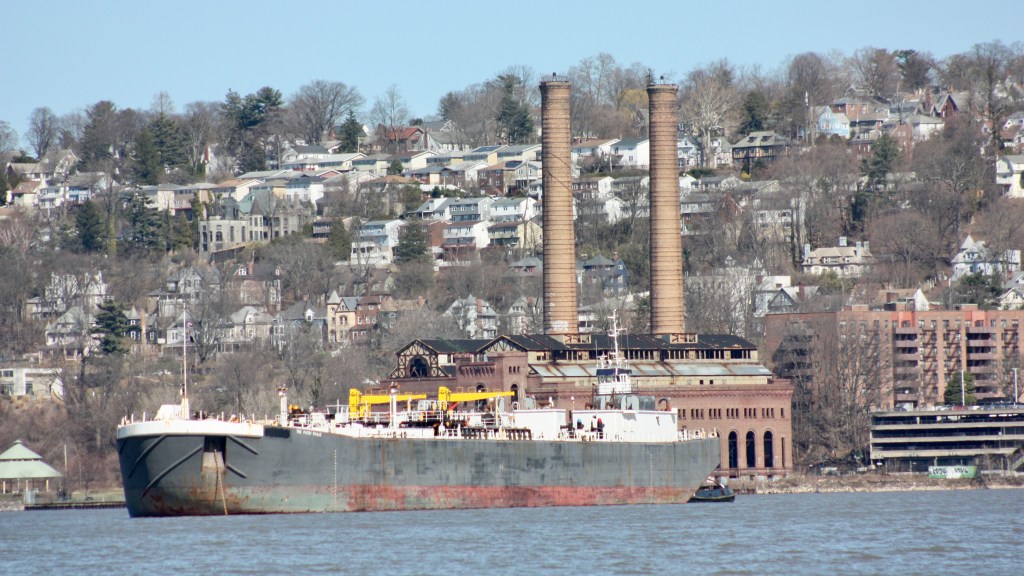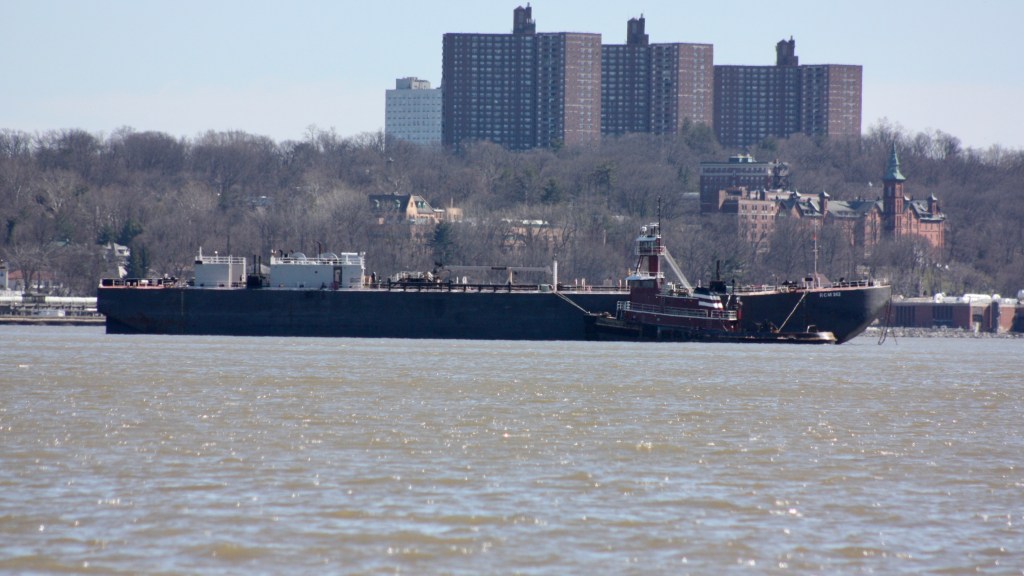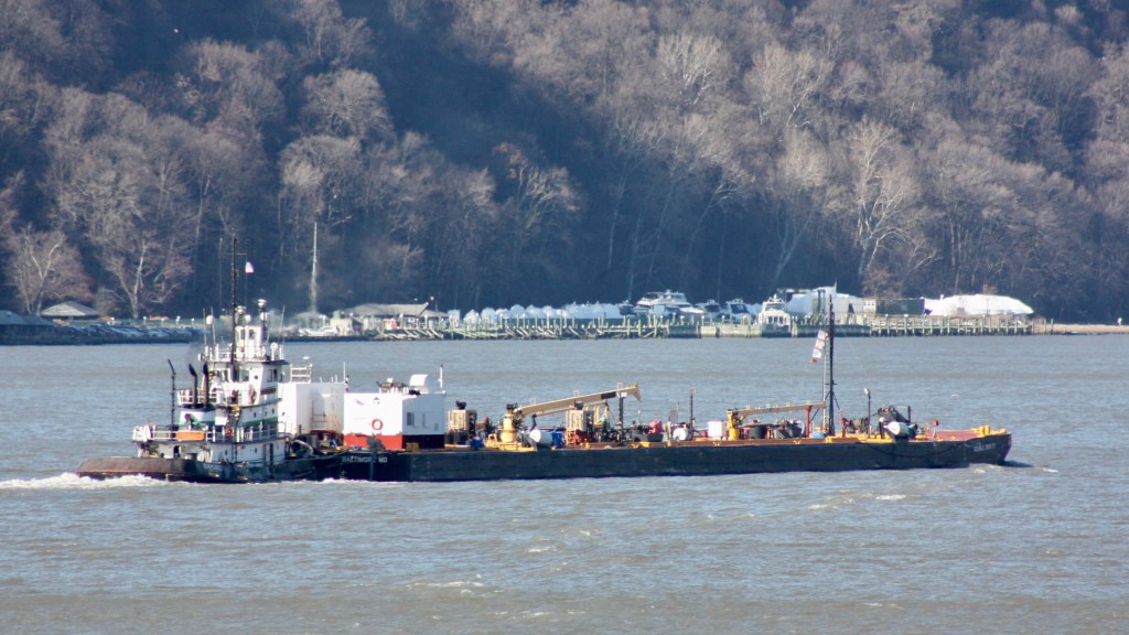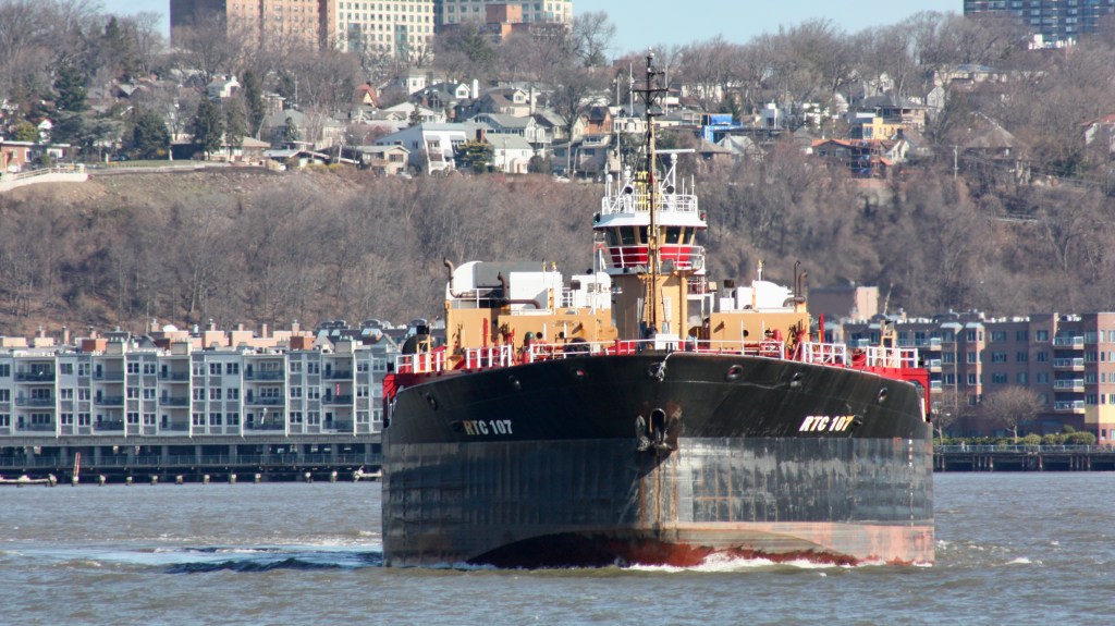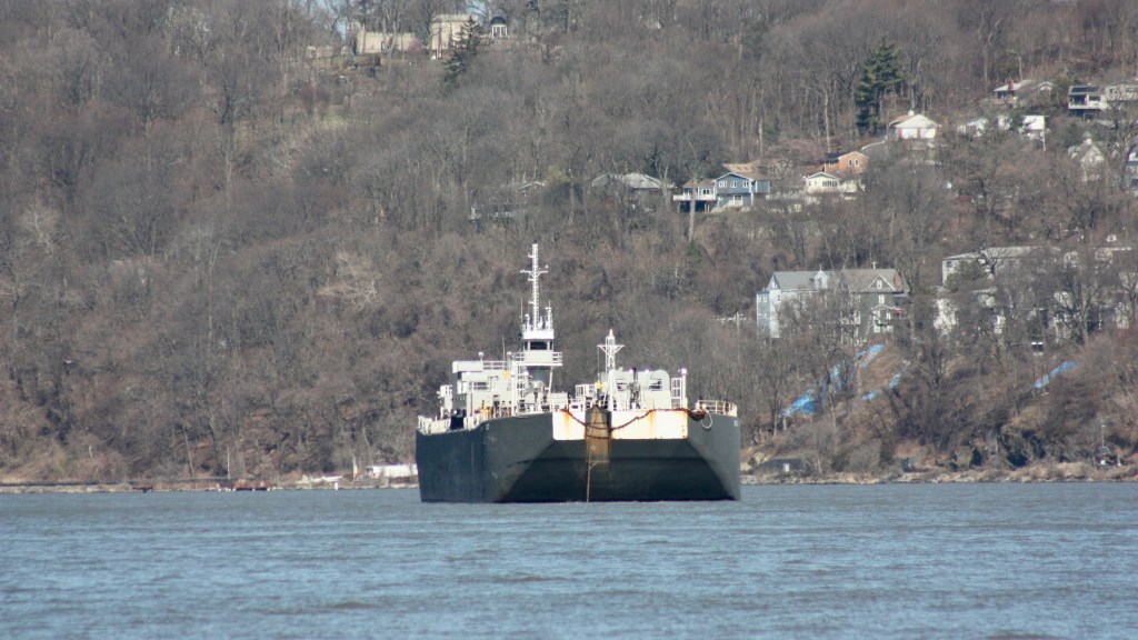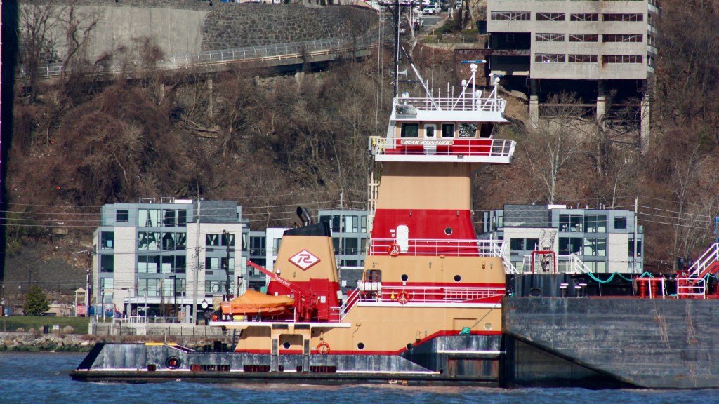 Dean Reinauer remained anchored off 72nd Street SundayJosephine was further north, near EdgewaterThe Haggerty Girls were anchored in between, but pulled up the hook and headed for the Shell terminal at Sewaren by 10am.Cape Henry, which had arrived from Philadelphia and anchored off Yonkers Saturday night with a loaded barge, passed the anchored Dean Reinauer and headed for Bayonne IMTT Sunday morning, seemingly bringing product north from the Delaware.Over on the Jersey side, the Palisades Park marinas are still mostly empty, but the Parkway Police keep a RIB at the ready in Englewood MarinaThe Beatrice is anchored off Yonkers, with the old New York Central Glenwood power plant visible in the backgroundPatrice McCalister was anchored a bit to the south, with the College of Mount Saint Vincent visibl in the backgroundJordan Rose was anchored a bit further northThe Hudson River Pilots boat was tied up at its usual spot near the downtown Yonkers recreational pierDann’s Topaz Coast had the sugar barge Montville tied up at the Domino plant in Yonkers after coming up the coast on SaturdaySchuylkill, seen just Thursday heading north with a loaded barge, was heading north again after quick turnaroundsBrant were seen off Riverside Park in the 100sThe Baylander was back at the 125th Street Pier with what looked like a fresh coat of paint, just about 3 weeks after being towed to a dry dock on Staten Island.DEP’s Red Hook was servicing the North River sewage plantA paddle boarder was out near the BridgeAs was a kayaker