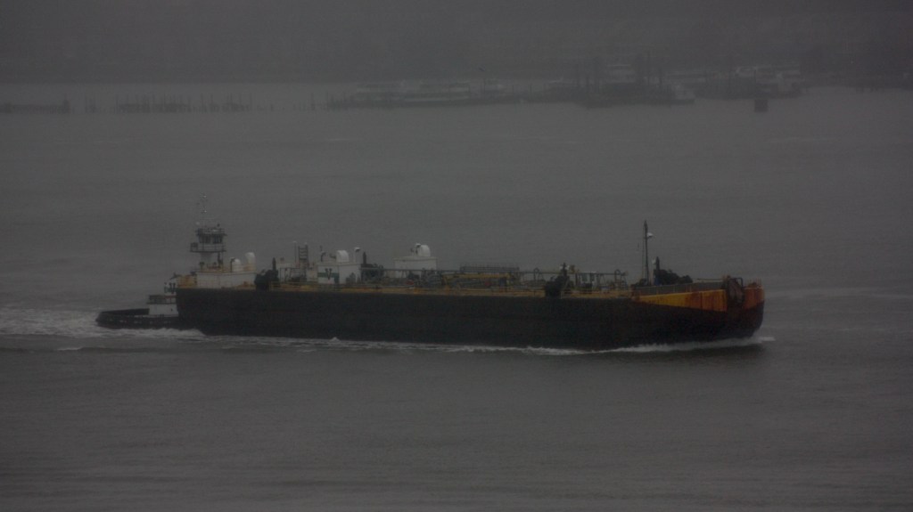 Traffic on the North River remained heavy Wednesday after a busy Tuesday. Most observed barges were returning empty from deliveries elsewhere, but a foreign flagged tanker did move upriver heading for Albany with refined product from Montreal. This is the fourth presumed foreign oil products cargo observed by NRN over the past month or so, and the second from Montreal, with the other two originating in Northern Europe. A steady rain and cooler temperatures blanketed the region Wednesday after Tuesday’s beautiful spring conditions.