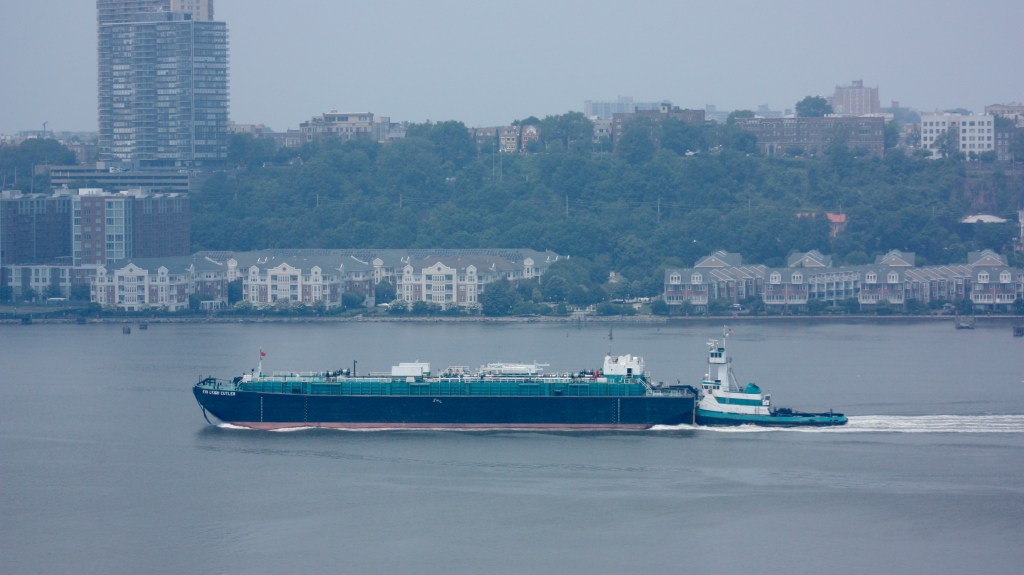 Smoke cleared Thursday and air quality went from ridiculously bad to just pretty bad. It was enough to keep recreational boaters off the North River, but commercial traffic was typical, with energy products and salt moving north and empties coming south. The Coast Guard Cutter Sanibel dropped lines from Pier 86 and headed for Delaware Bay, seemingly not returning to their Woods Hole base just yet.