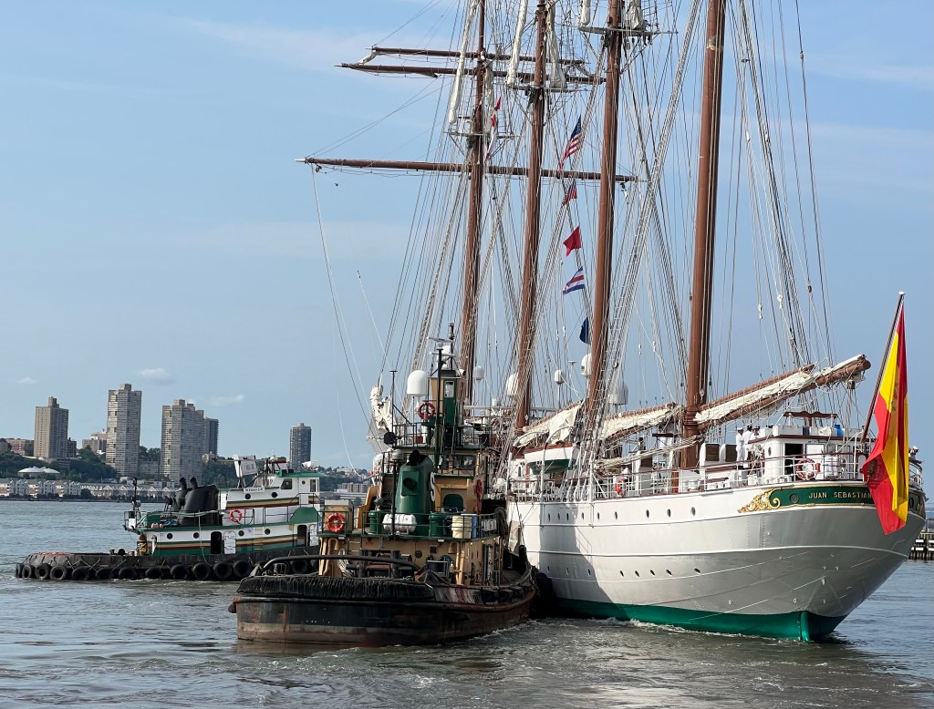 Through traffic seemed light on the North River Tuesday, as anchorages began to fill up. Kirby’s Cape Canaveral ATB moved up the River and dropped anchor north of Lincoln Sea, while Kimberly Poling taking up position to the south. The Spanish Navy schooner Juan Seabastian de Elcano departed from Pier 86, heading back for Spain after about a week in New York City. The cruise ship Viking Neptune arrived from Nova Scotia and docked at Pier 90.