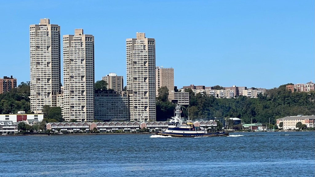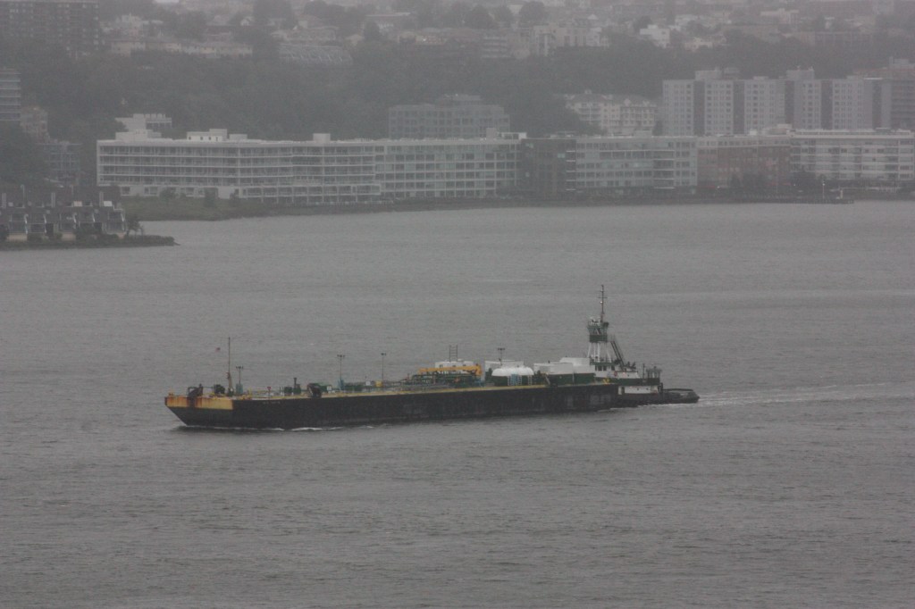 Stormy conditions and gale warnings put a damper on the weekend as the tail of Tropical Storm Ophelia swept over the region. As usual, the North River anchorages filled up with tug/barge combinations as crews looked to get out of the weather. By Sunday afternoon, Patrice McAllister, Jill Reinsure, Vane’s Wicomico, Lincoln Sea and Saint Emilion were lined up south of the bridge, thought the Saint and Lincoln Sea made an early exit as winds abated later in the day. Vane’s Charleston and Philadelphia were further up, off Riverdale.