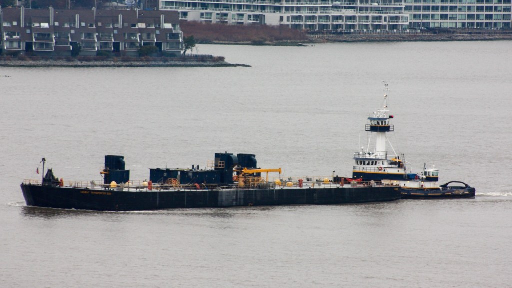North River traffic was light on Saturday with a winter storm arriving by late afternoon. Accumulation in New York City is expected to be minimal, but winds were building by the end of the day.