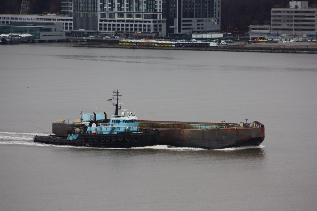 The weekend departed with light traffic on the North River, as dredging scows continue to be towed down from Yonkers and tanker barges returned from fuel runs up north.