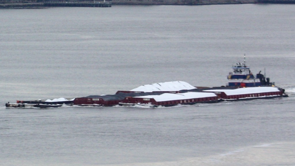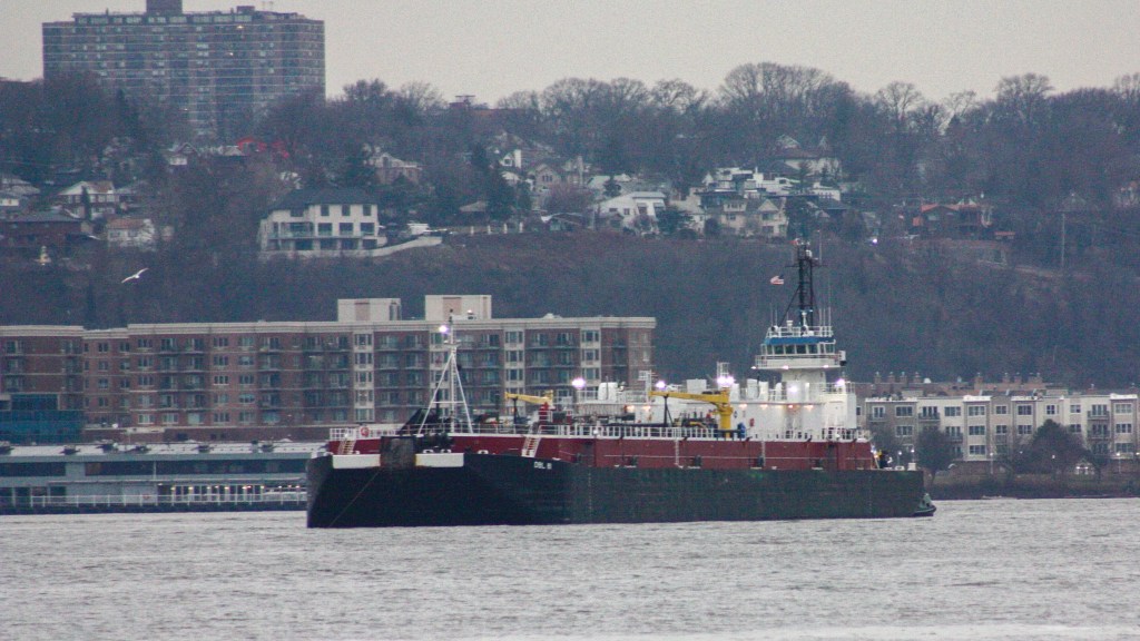 Deteriorating weather conditions brought heavy traffic to the North River as ATBs and tugs with tanker barges sought out anchorage space and some specialized offshore vessels also came in to get out of the chop. Storm warning was in effect from 18:00 with gusts up to 60 knots and seas of 16 to 21 feet forecast for New York Harbor. As of 16:00, wind gusts had reached 37 knots at Ambrose Light, with waves reaching 8 feet.