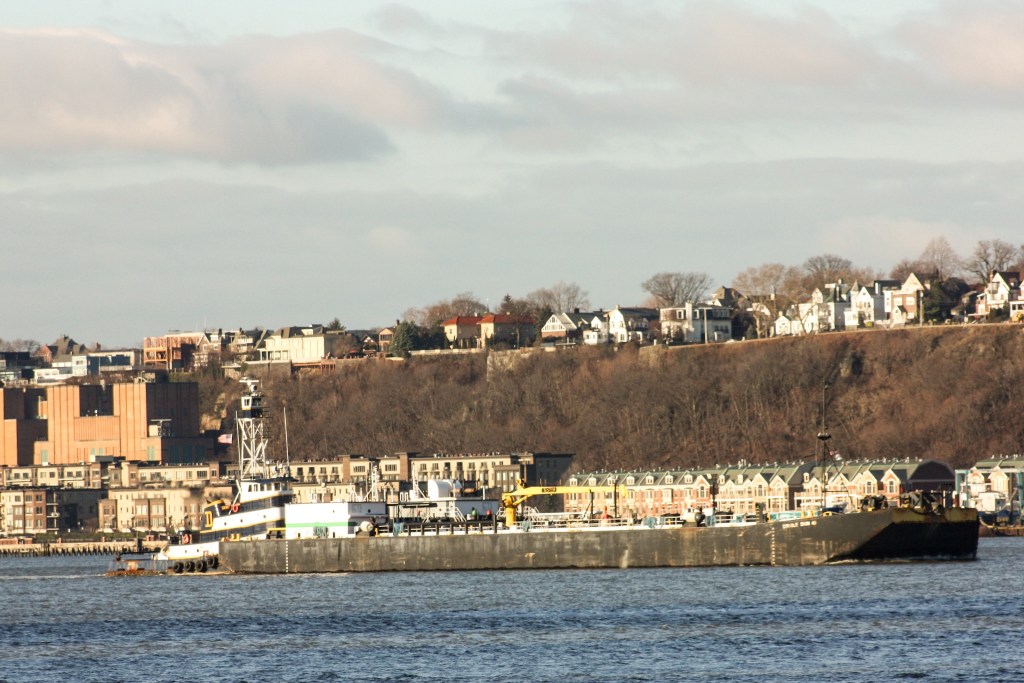 Dann Marine’s Zeus has not previously been seen on NRN, even though the 50-year old tug has been back in New York Harbor for a couple of years after previously working several years in the Great Lakes according to the Tugster blog. Zeus was heading for New Hamburg NY with Vane’s Double Skin 40 barge. The barge is a more regular visitor, most recently pushed by Stephanie Dann, who is currently in Philadelphia, and in the past we have seen it with Discovery Coast and Vane’s Cape Fear.Dann’s East Coast, which works sugar, was also on the river Saturday, running light to rejoin a sugar barge in Yonkers after visiting a boat yard on Mariner’s Harbor.The Reinauer Twins/RTC 104 ATB has not been seen on NRN in about a year. With over 500’ of combined length this is one of the larger ATBs in the Reinauer fleet. On Saturday they were pushing for Albany.North River regulars Saint Emilion and barge A87 returned from Albany and headed for the Shell terminal in Newark.The venerable Dace Reinauer with RTC 83 came through at civil twilight, returning from AlbanyWith temperatures warming, Coast Guard icebreaker Sturgeon Bay returned to Bayonne base Friday evening after deploying up north during the cold snap.The American black duck was back on the North River Saturday morning, along with a mate.