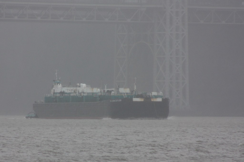 Drenching rains and high winds saw the relative shelter of the North River anchorages in high demand. A marine storm warning is in effect through Wednesday night, and by 1600, Ambrose Light is seeing gusts approaching 50 knots and wave heights over 12 feet, while Robbin’s Reef in the Upper Bay reported gusts over 30 knots.