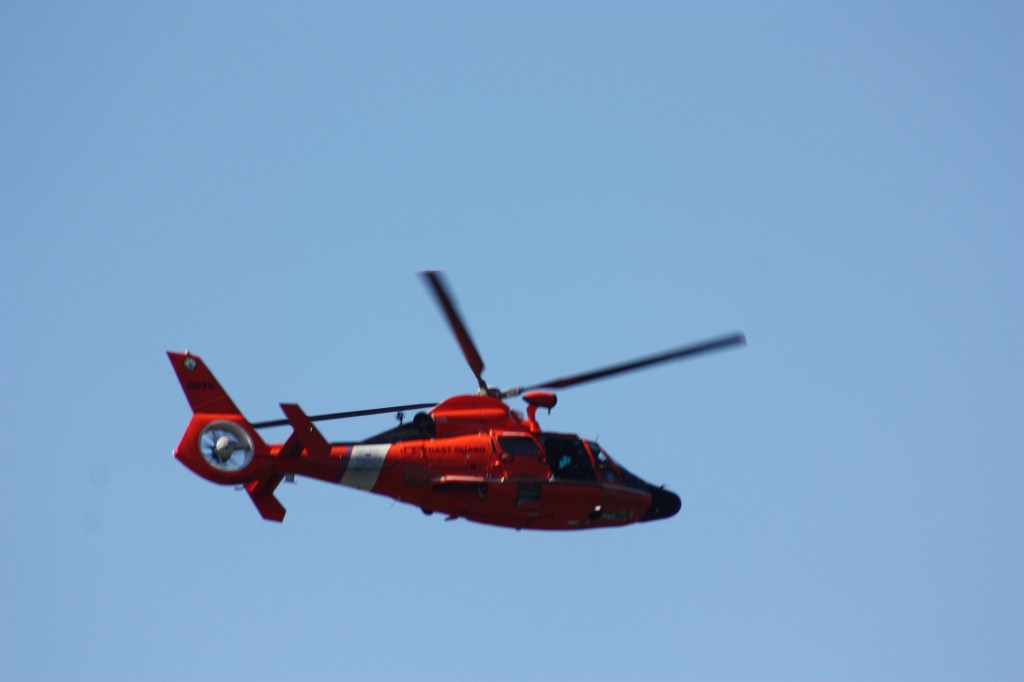 A Coast Guard MH-65 dolphin came up the North River Tuesday, probably on a patrol from their Atlantic City base.