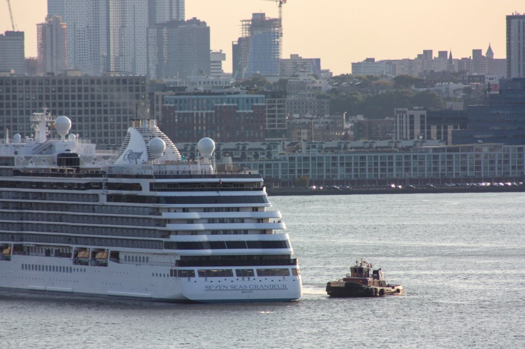Later, a Moran tractor tug helped Grandeur leave for the Canadian Maritimes.