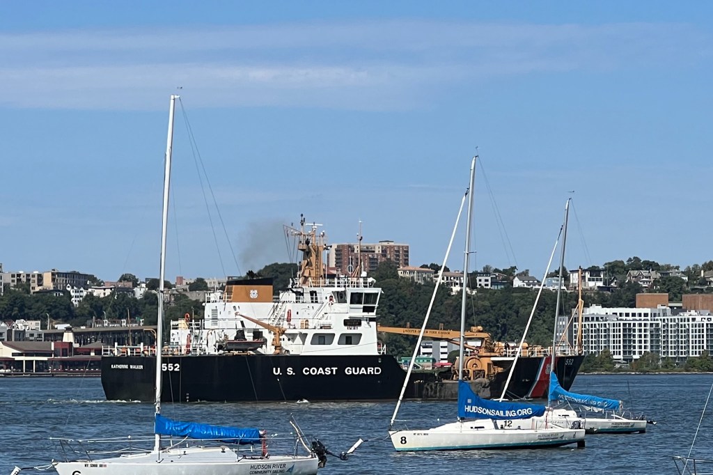 Keeper of New York Harbor Katherine Walker passed Pier 66 mornings headed upriver to replace an extinguished navigation buoy north of the Cuomo Bridge