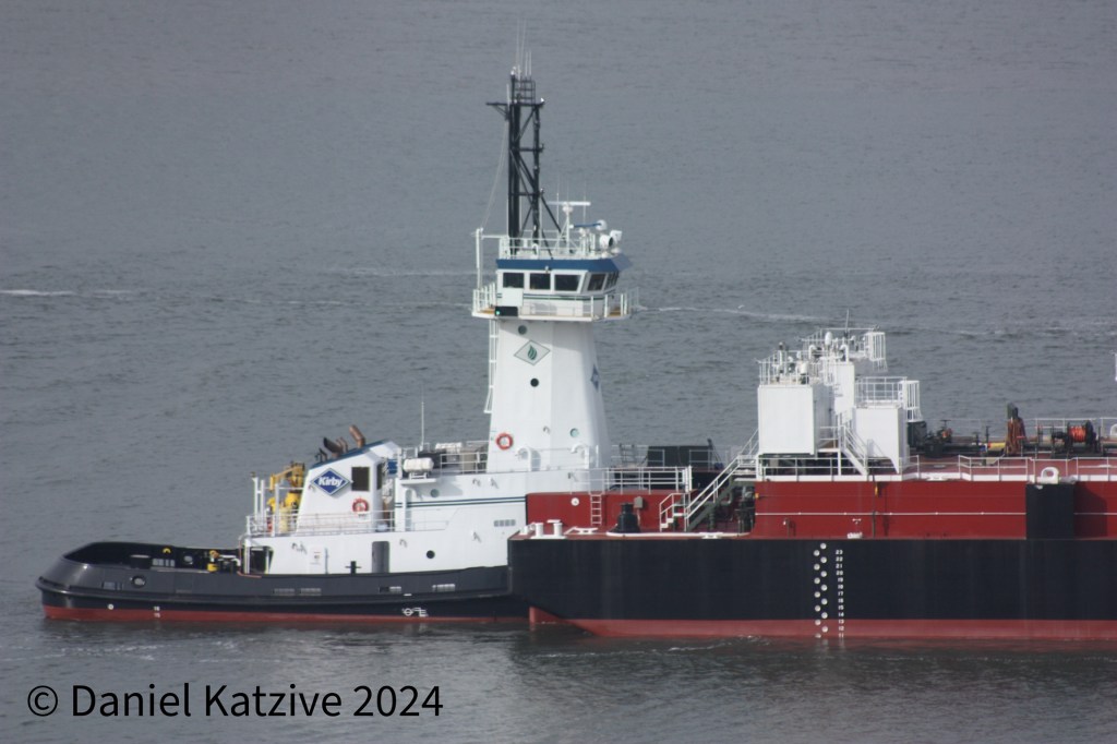 The Kirby Cape Canaveral/DBL 101 ATB came up the North River on Wednesday to anchor. They were coming from the GMD Shipyard in the Brooklyn Navy Yard where they may have been having some work done.