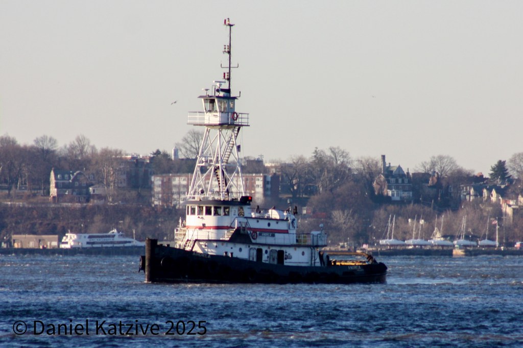 Centerline’s Andrea paid a visit to the Con Ed fuel dock at North River Pier 98 on Tuesday morning. Possibly they were dropping off crew or equipment for the HMS 2605 barge which remains tied up there adjacent to the GCS 230 barge, holding back-up fuel for the 59th Street steam plant nearby.
