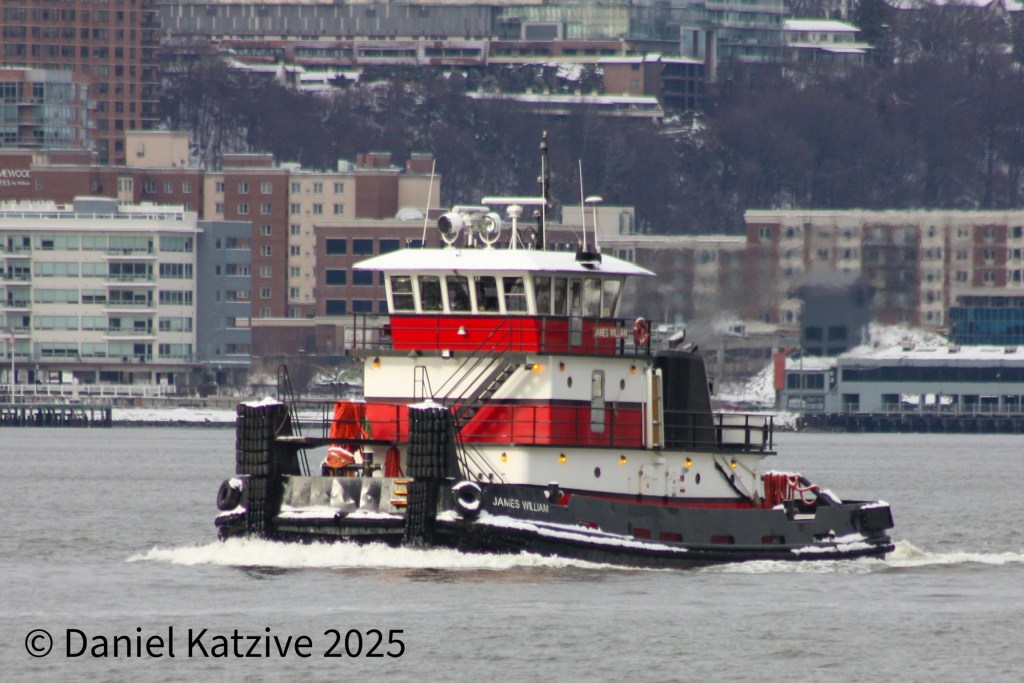 Kirby tug Ross Sea came up the North River early Friday running light, passing the anchored Reinauer Josephine ATB on the way up the West Side. They were heading for Kingston to pick up a barge being serviced at the Feeney Shipyard there. Ross Sea returned with the 386-foot Randy King tank barge Sunday afternoon heading for the harbor. Norfolk’s Charles James William seemingly provided an escort, following at a respectful distance. I believe Ross Sea and Randy King normally operate further south down the coast in Philly or Norfolk.