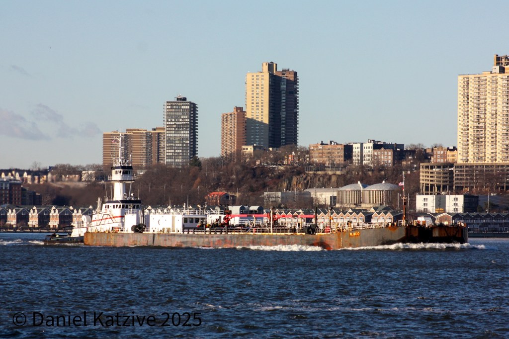 The long cold winter has meant lots of demand for heating oil up north and the Hudson River has been busy with tank barge traffic. On Friday morning, the Saint Emilion tug/ A87 tank barge pair operated by Poling-Cutler were heading for Rensselaer and Hawsepiper/ Flaco were en route to Buckeye Newburgh with pool product cargos.