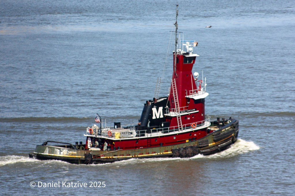 Moran tugs running light up the North River usually singnal there is some action coming at the wallboard plant in Buchanan NY. Sure enough, a few hours after Mary Turecamo passed by Sunday, the 656-foot bulk ship Eastern Venture came through, Buchanan-bound with a cargo of Spanish gypsum, the principal raw material in wallboard. The plant gets about 12 ships a year and, together with the sugar refinery in Yonkers and a small oil products terminal in Peekskill, is one of the only remaining users of Westchester’s deep water shoreline for maritime transportation. In addition to Mary, Kimberly Turecamo also helped dock the ship.