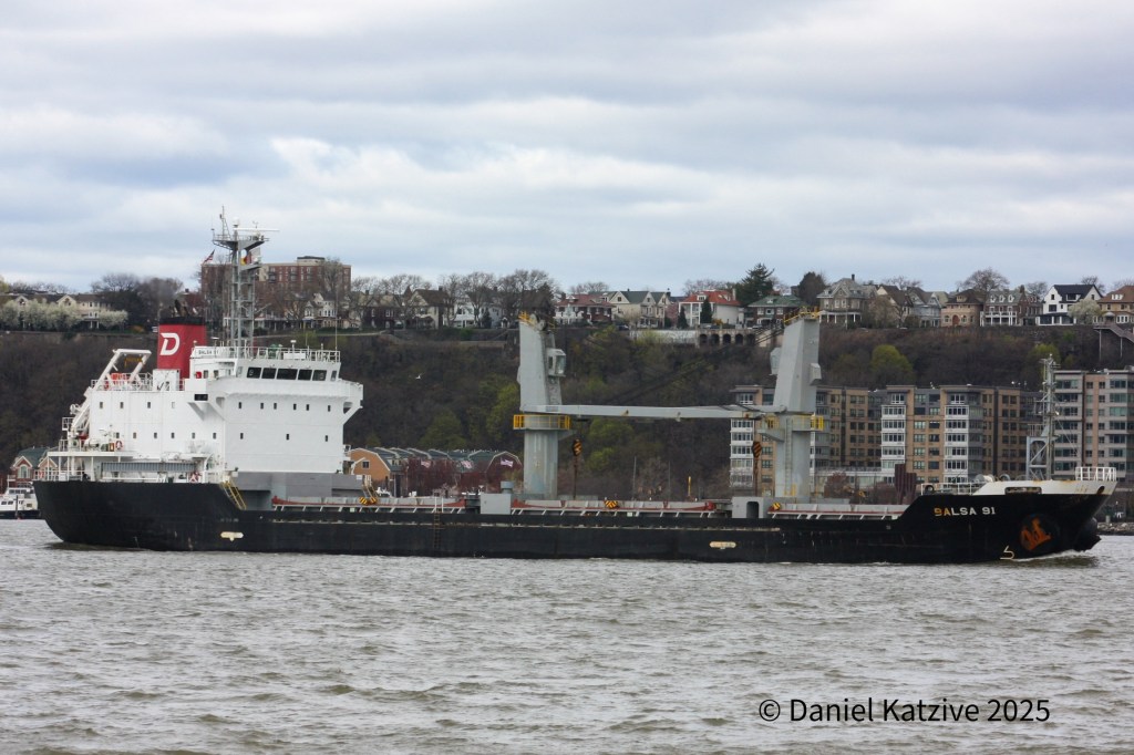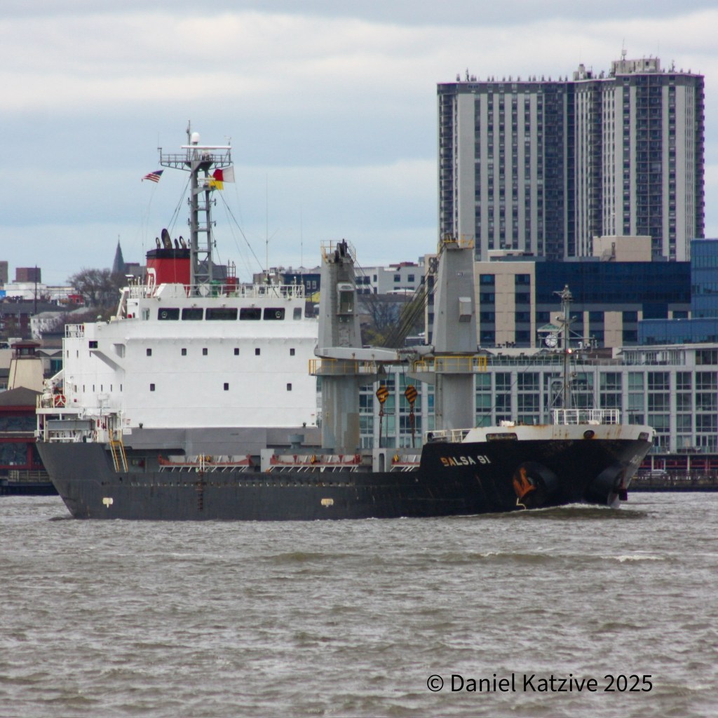 Balsa 91, a compact 350-foot Panama-flagged bulk ship, arrived on the North River Wednesday with a cargo of raw sugar from Dominican Republic heading for the refinery in Yonkers.