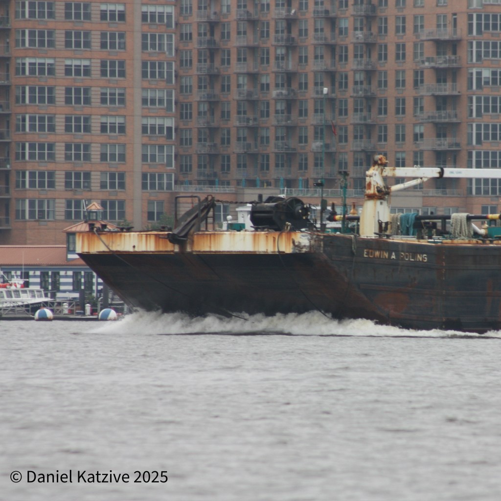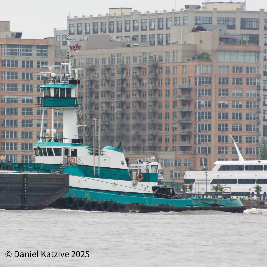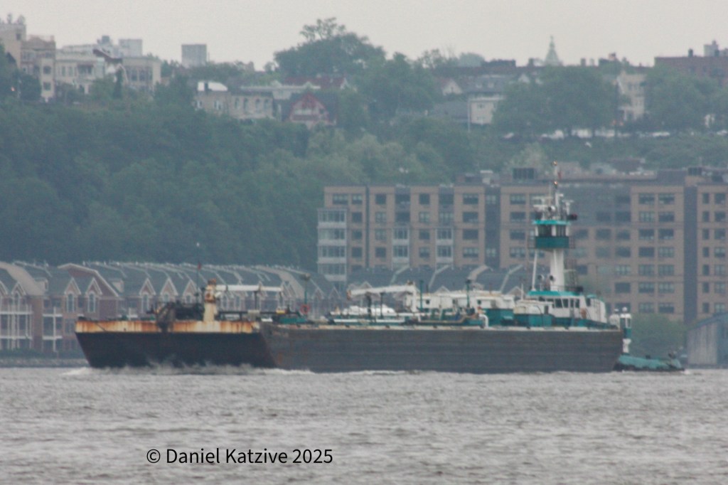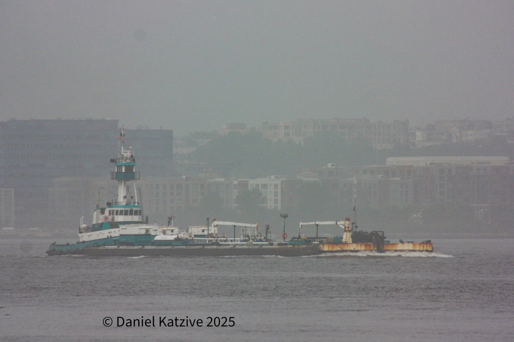 Poling & Cutler’s 4,200 HP Marilyn George came down the North River late Thursday morning with the light tank barge Edwin A. Poling, heading for the Kills. By early Friday, they were Albany-bound again, cutting through the fog having loaded new cargo overnight at, I believe, Bayway.