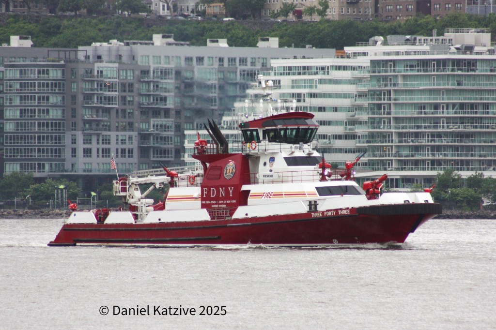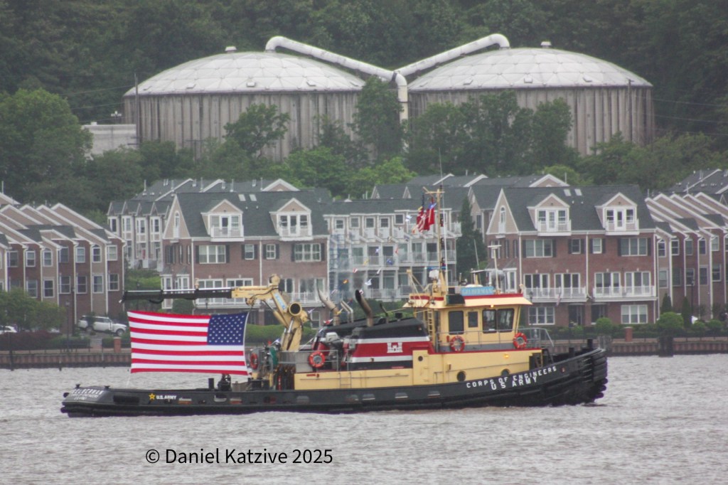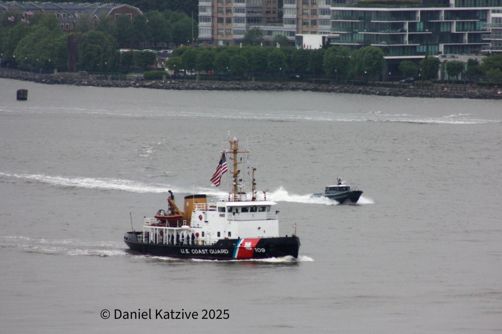 Also this year, the visiting ships did not venture up the North River beyond the cruise terminal, perhaps a function of bad weather or the heavy ebb tide, though the local vessels did come up as far as the Upper West Side. Oak Hill did not come up the river at all but instead headed straight for the Homeport Pier in Stapleton.