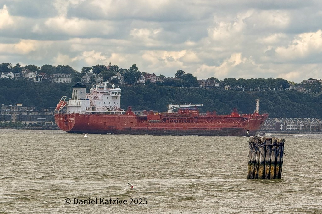Harbour Fashion, a compact 475-foot 17,000 deadweight ton products tanker came up the North River Wednesday afternoon, arriving from Montreal and heading for the Buckeye terminal in Albany. We have seen this vessel on this route moving between Canada and Albany before and she may be collecting ethanol for export back to Canada or else delivering a Canadian refined product for customers up there. By Saturday morning, Fashion is on her way back down river and signaling Halifax.