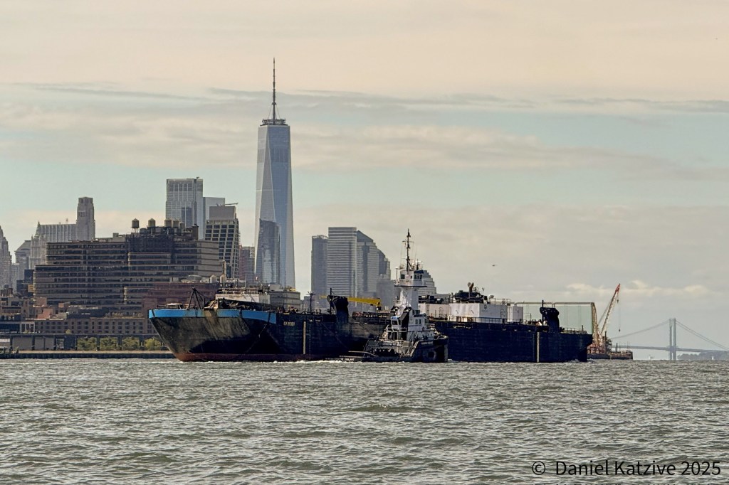Genesis Vigilant came down the North River after leaving anchor off Yonkers Tuesday morning with the GM 8001 barge on the hip, heading for the Upper Bay. After a visit to Caddells on the KvK, Vigilant brought the barge back upriver to Yonkers where she remains Wednesday morning.