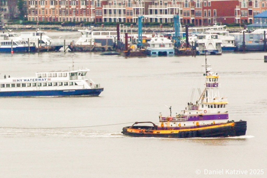 FROM THE ARCHIVES: On New Year’s Eve 2023, Hays Tug and Launch’s Linda Sue arrived on the North River from the Delaware River with a Vane tank barge in tow astern. That was the first time I had seen Linda Sue. The tug and barge were around New York Harbor and on the North River periodically in the first few months of 2024 but I haven’t see her since then. Two years later, Linda Sue is currently underway off Virginia, heading from Norfolk to Galveston.