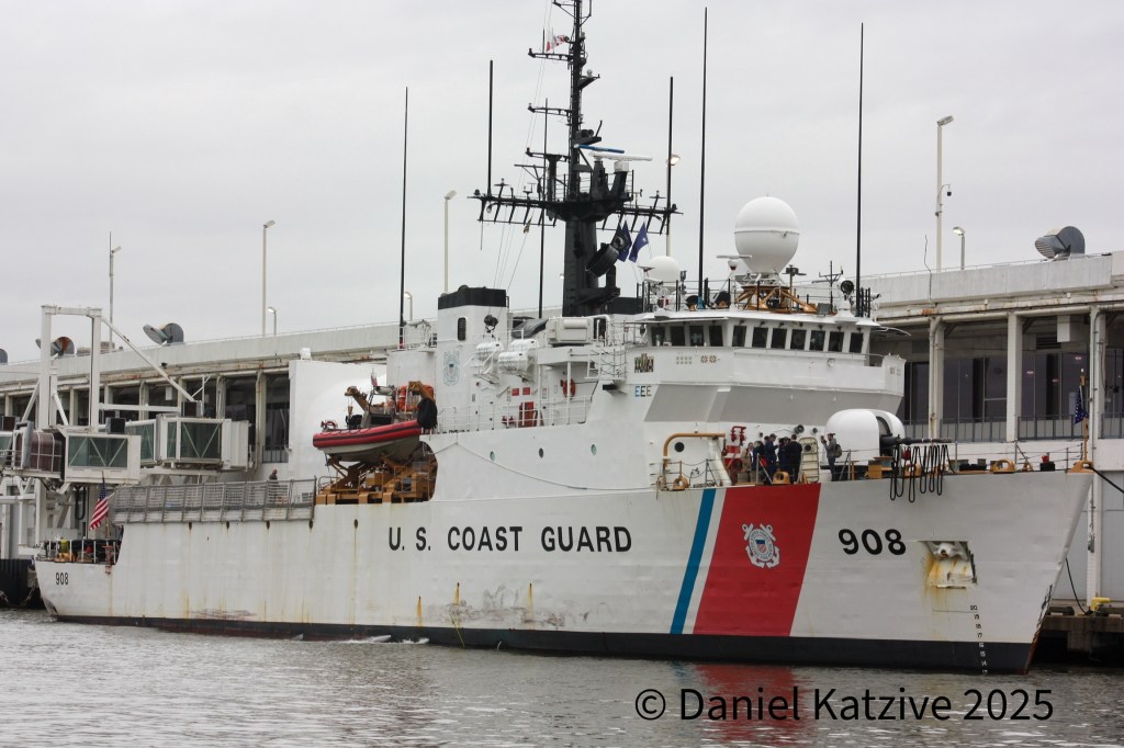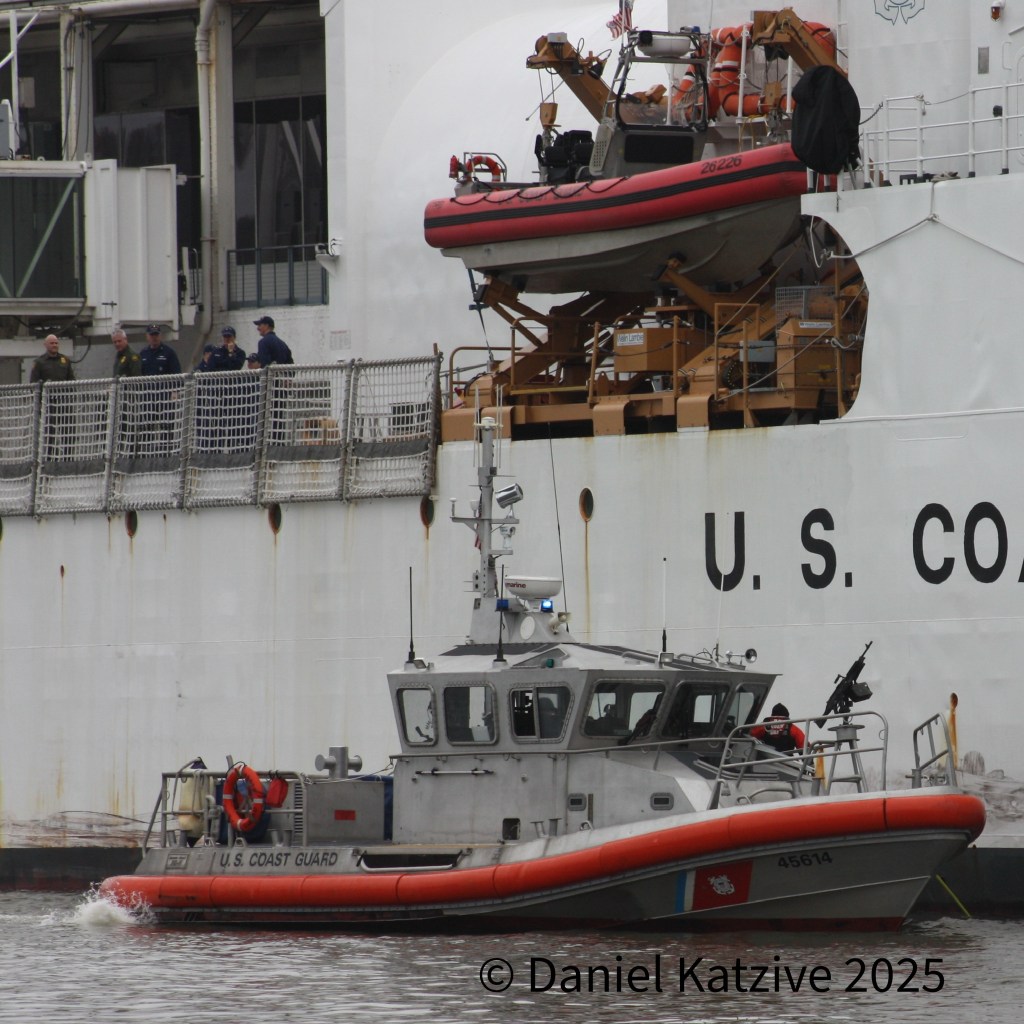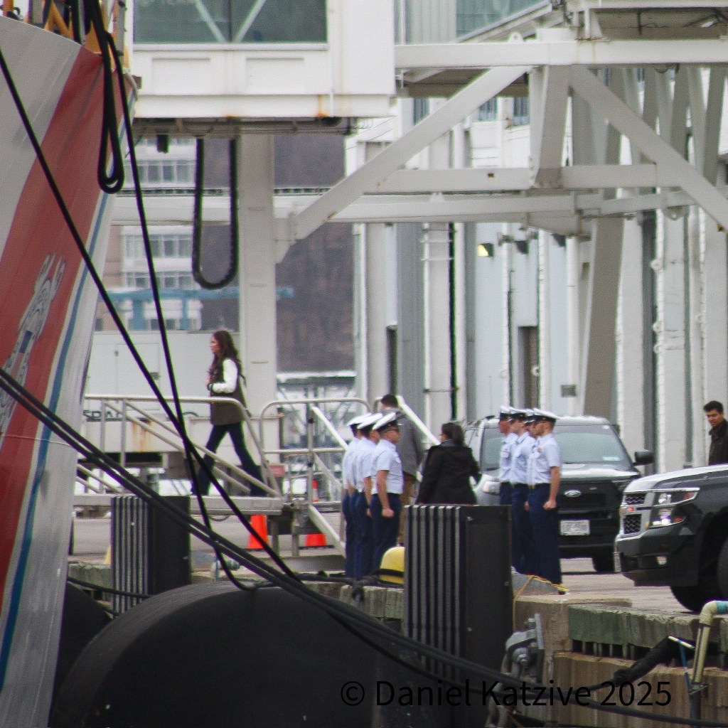 FROM THE ARCHIVES: Exactly a year ago, on March 5 2025, I was hanging out with some local tabloid reporters outside the Manhattan Cruise Terminal as Secretary of Homeland Security Kristi Noem boarded the Coast Guard Cutter Tahoma at Pier 88 where she hosted a meeting with federal law enforcement officials on the ship’s enclosed hangar deck. As far as I was able to determine, the 270-foot cutter, which we don’t normally see on the North River, was brought down from Newport for the sole purpose of hosting the meeting. A year to the day after this meeting, Noem is out, the first cabinet-level official to leave the administration.