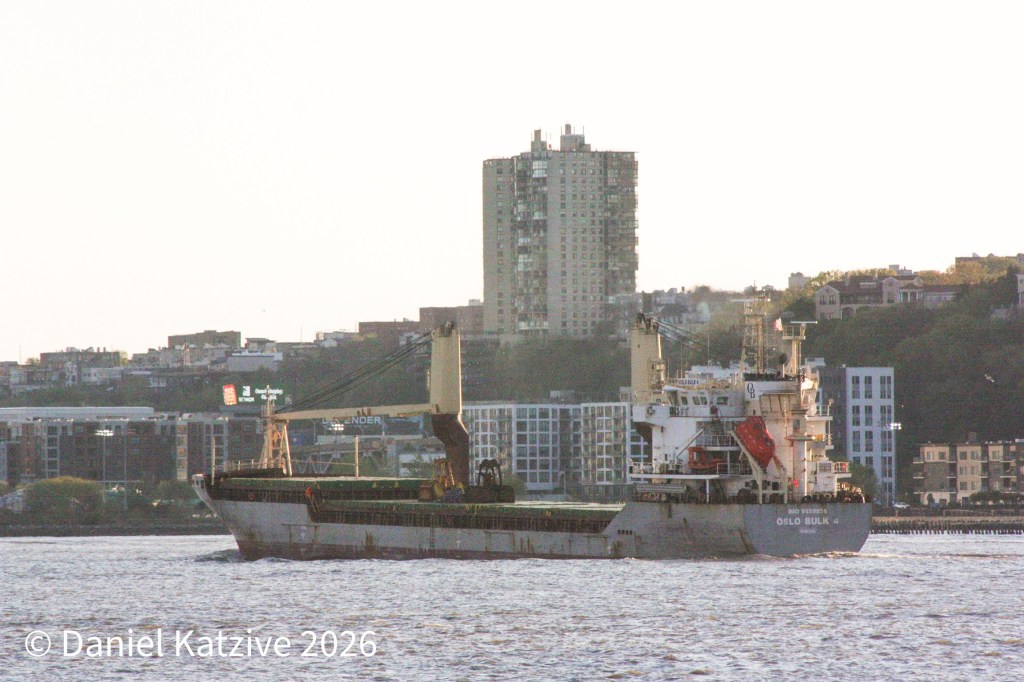 Oslo Bulk 4, a small Portugal-flagged bulker, was heading for sea Monday just before sundown after coming up from the Caribbean to load an unknown cargo at the Port of Coeymans. By Tuesday morning, she is off the Delaware coast signaling Savannah as her next destination.