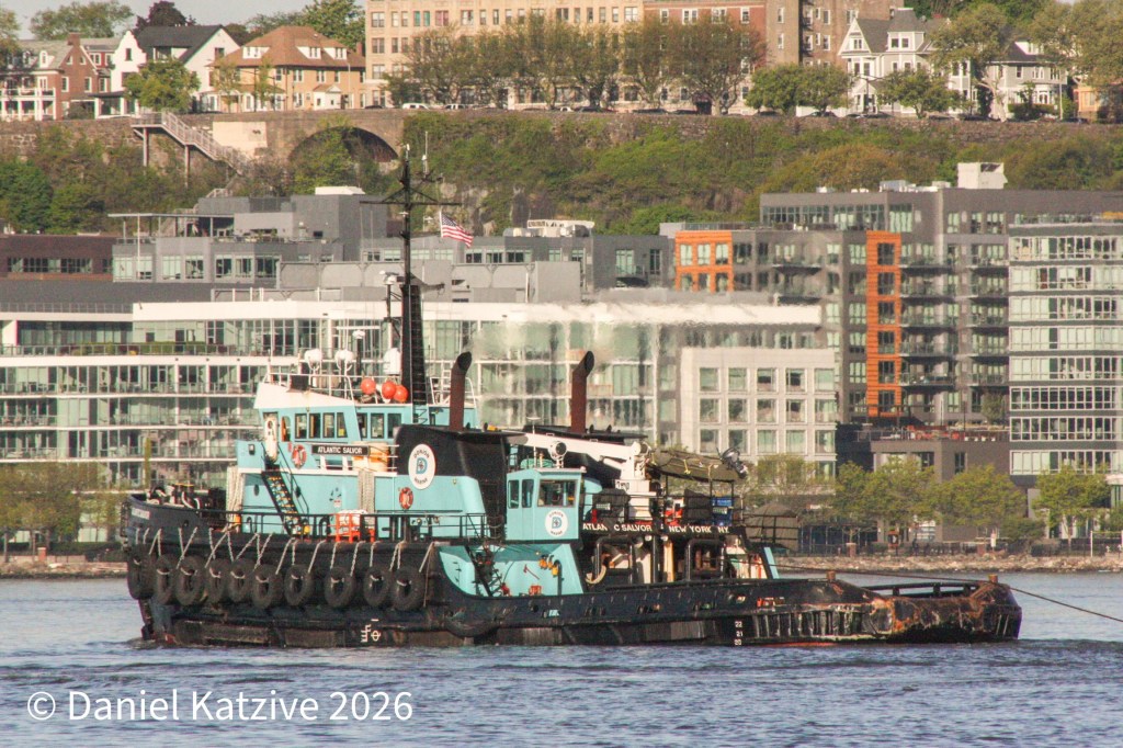 In the photos, DonJon tugs Mary Alice and the powerful Atlantic Salvor were maneuvering dump scows which Salvor will haul out to the Federal remediation area off Atlantic Highlands, NJ.