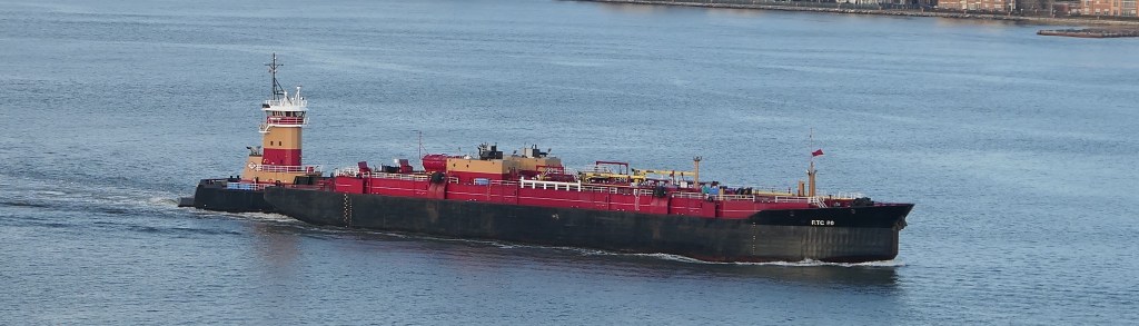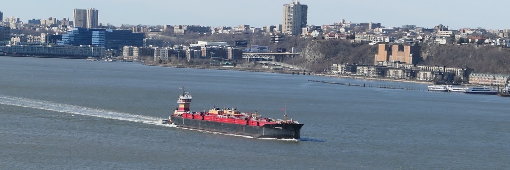 Friday opened with icy rain and fog, not great for shipping and definitely not great for photographing shipping. Cape Canaveral weighed anchor after dark on Thursday, collected a cargo in Lindin, and then anchored off Staten Island. She was replaced by Curtis Reinauer which anchored up by 125th Street, about a mile north of the Teresa, now nearly 3 weeks into her residency.